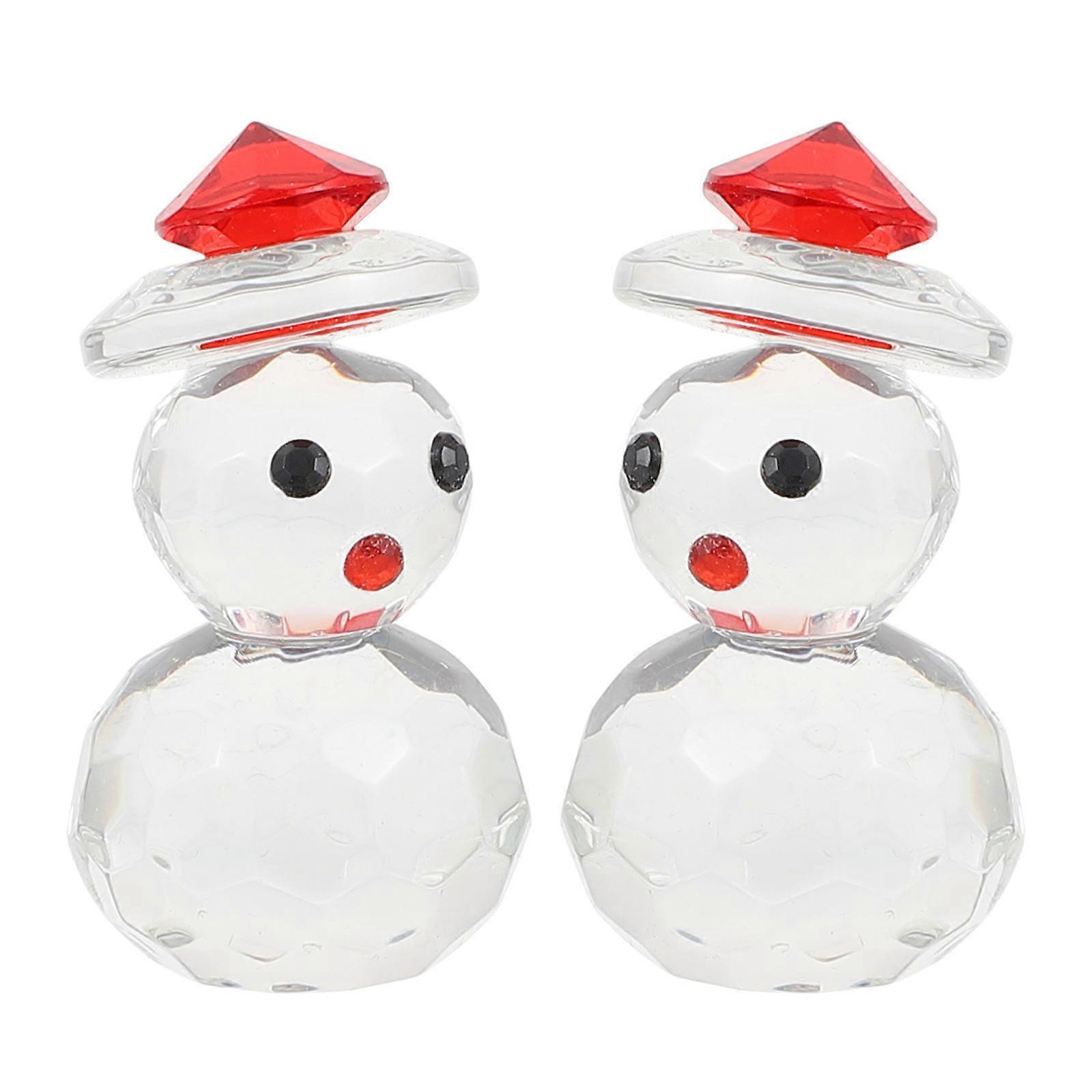 2Pcs Crystal Snowman Figurine Christmas Statue Desktop Ornament