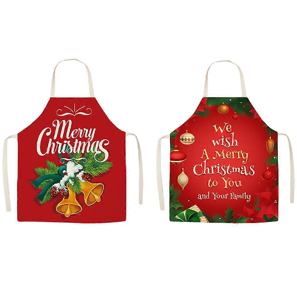 2pcs Christmas Aprons Funny Cartoon Apron Xmas Themed Kitchen Cooking Apron