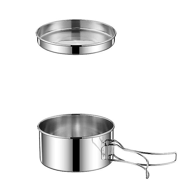 2PCS/SET Cookware Set Stainless Steel Cookware Kit Cooking Pot and Pan Set with Plates Cups for Outdoor Camping Backpacking Camping Cookware & Dinnerw