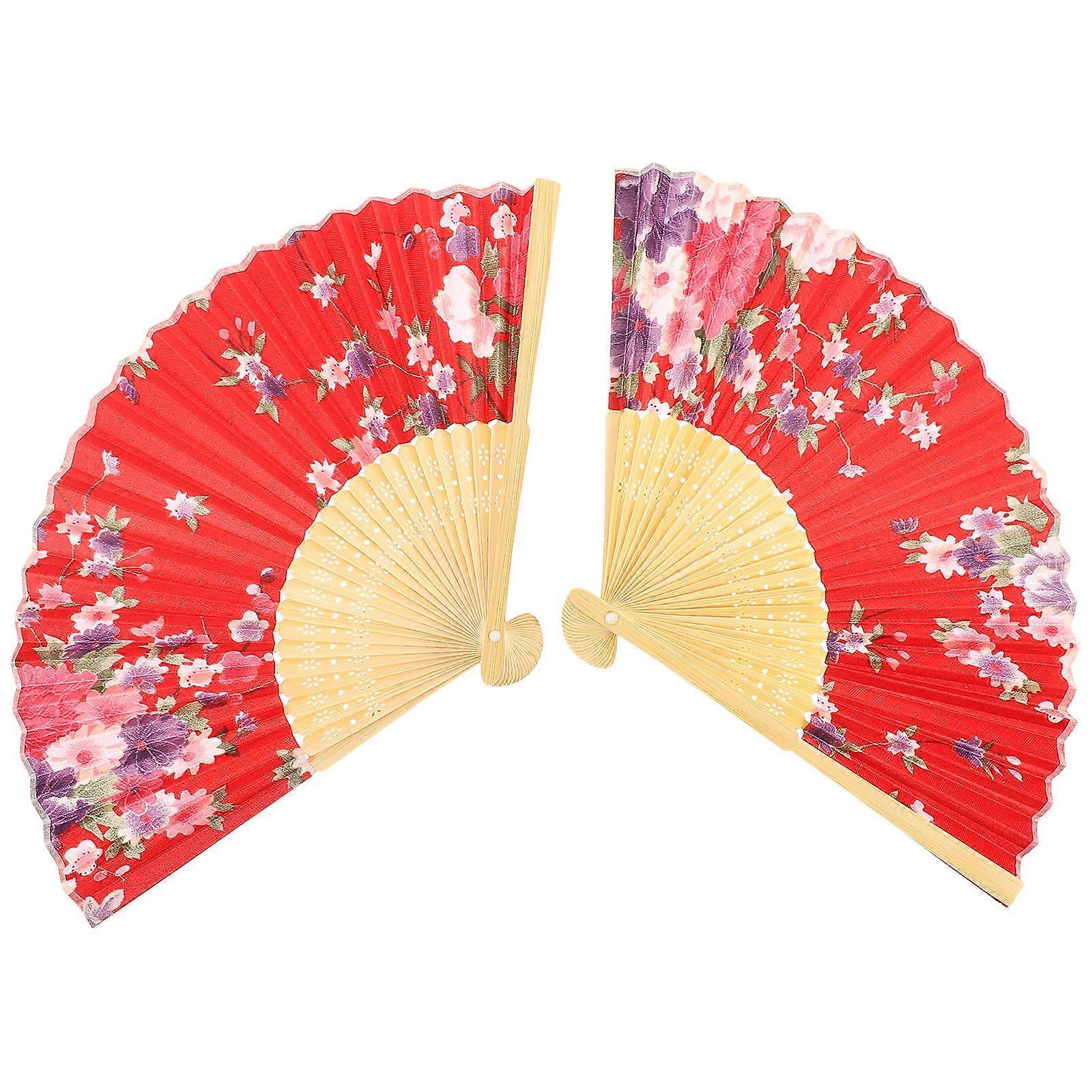 2PCS Silk Folding Hand Fan for Dance Party and Home Decoration