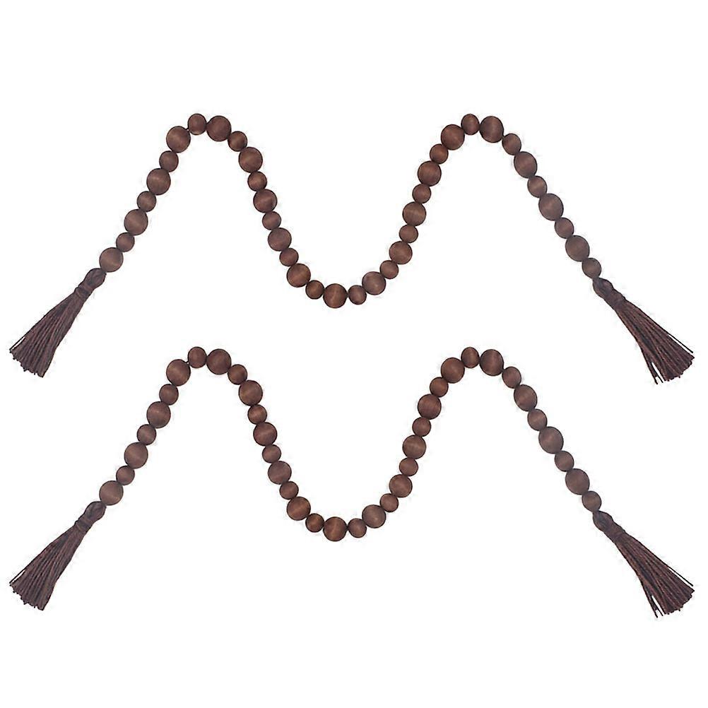 2pcs Farmhouse Wood Bead Garland with Tassels for Garden Decorative Art