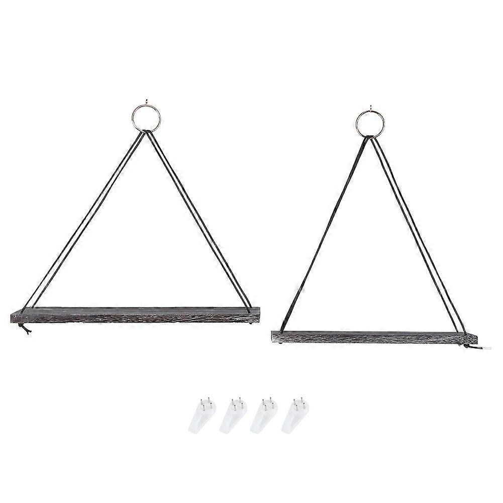 2pcs Hanging Rope Wall Mounted Wood Floating Shelves Plant Flower Pot Storage Rack Home Decorations