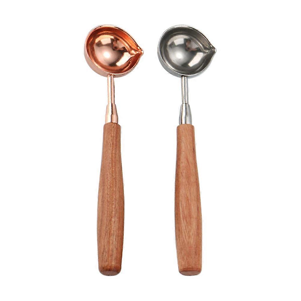2pcs Stainless Steel Measuring Spoons with Wooden Handle Kitchen Tools