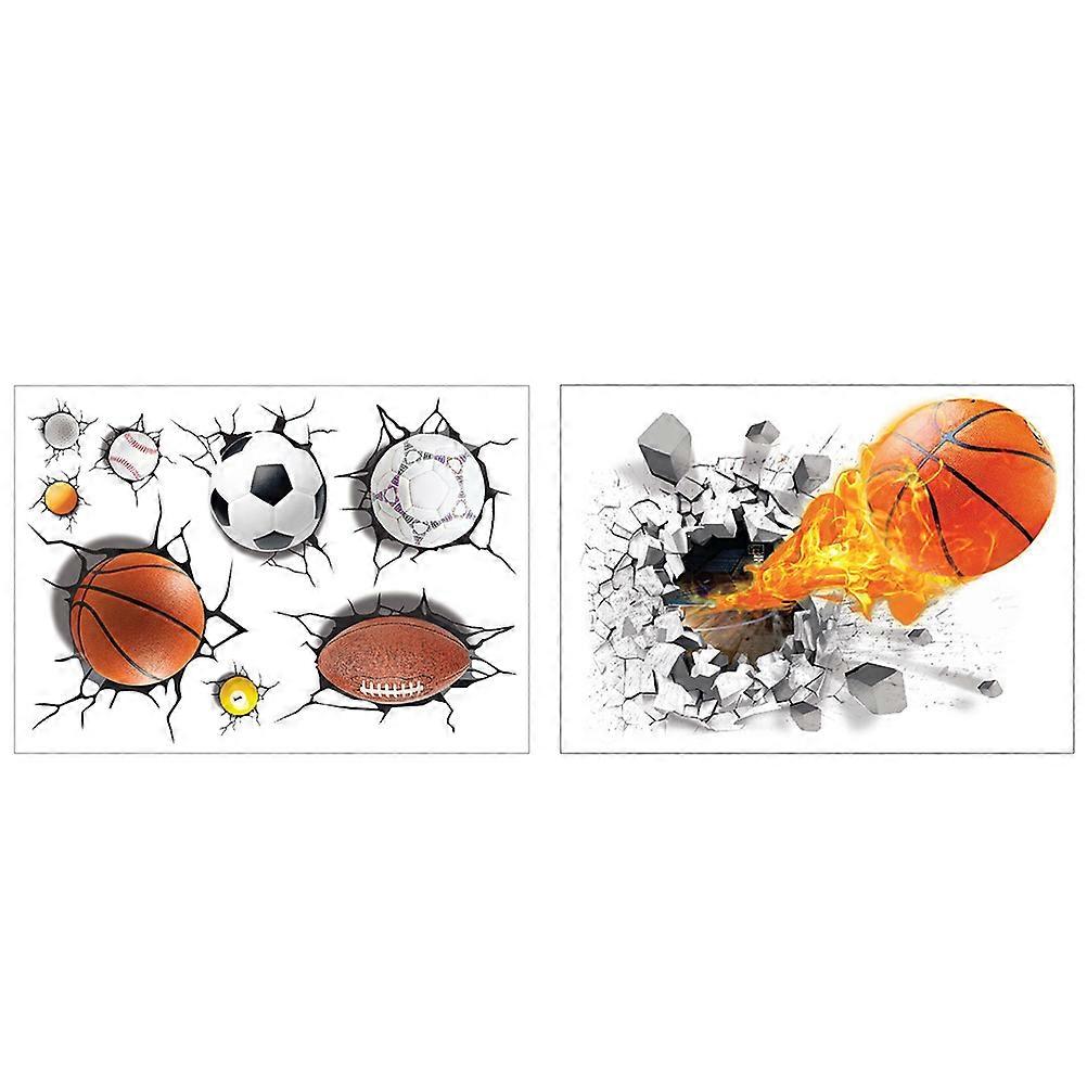 2pcs Decorative Wall Stickers, Simulation Ball Wall Decals for Home, Living Room or Bedroom, Creative Sports Design, Easy DIY Application for Smooth