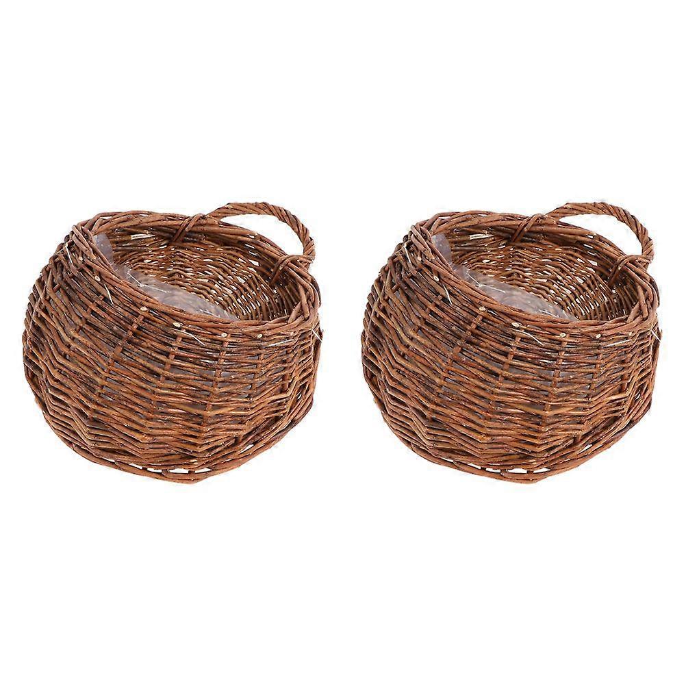 2Pcs Woven Rattan Wall Mounted Flower Basket Hanging Flower Arrangement Flower