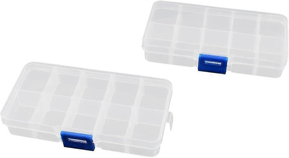 2 Pcs Clear Plastic 10 Sections Press Buckle Tablet Box Holder