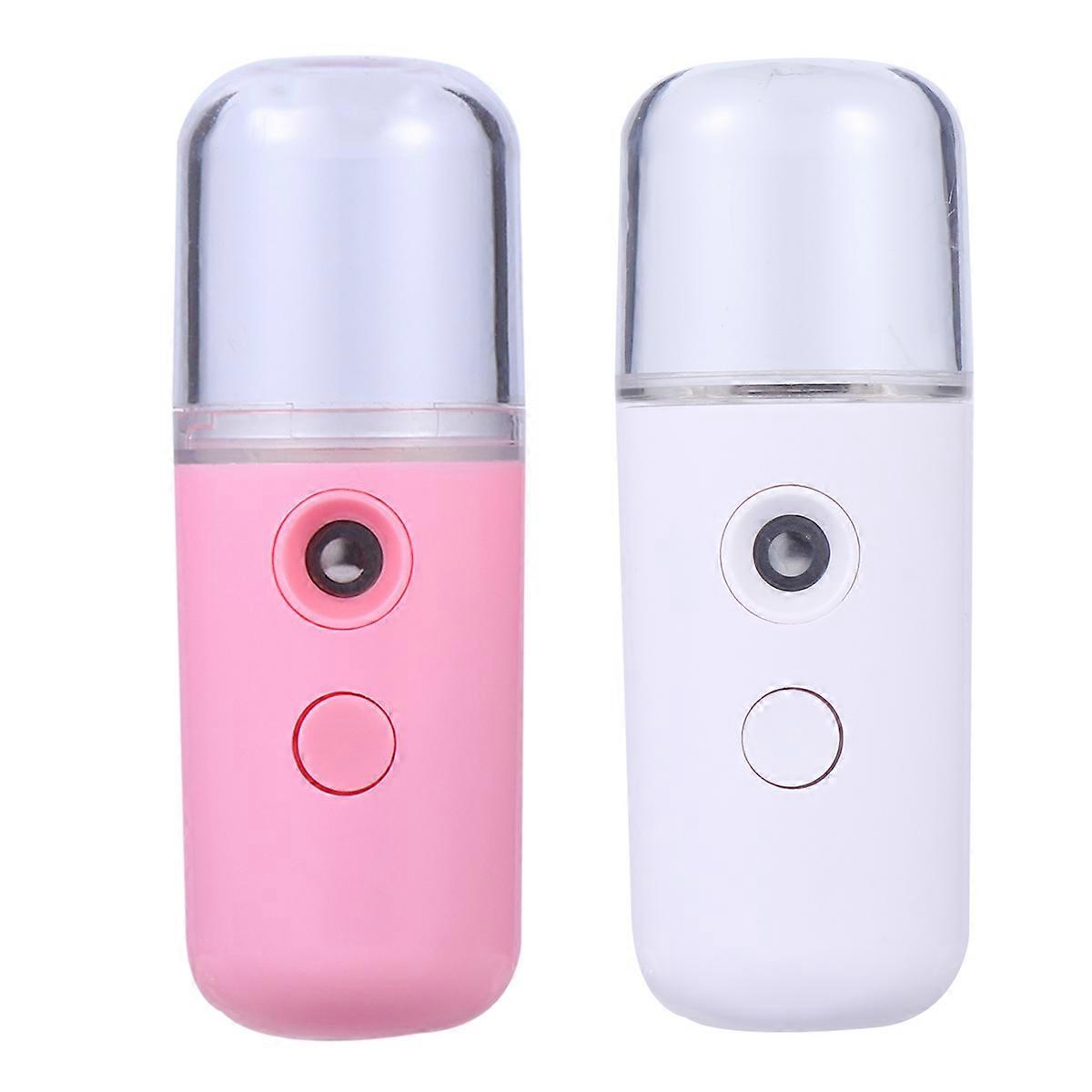 2Pcs Nano Handy Mist Spray Humidifier Cylindrical Beauty Spray Water Meter Portable Skin Moistener (White Pink)