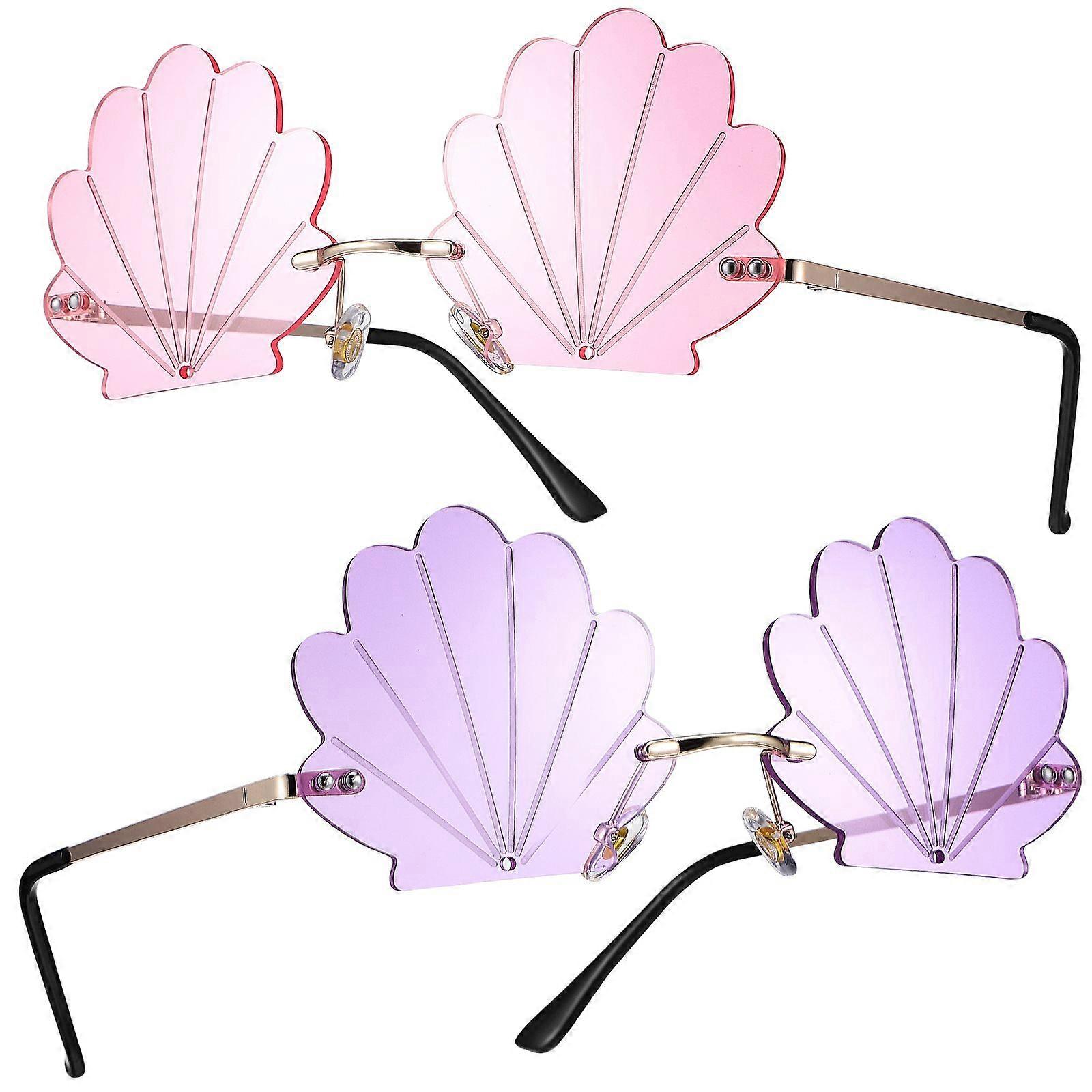 2 Pcs Sunglasses Seashell Sunglasses Party Eyeglasses Frameless Glasses Party Photo Props