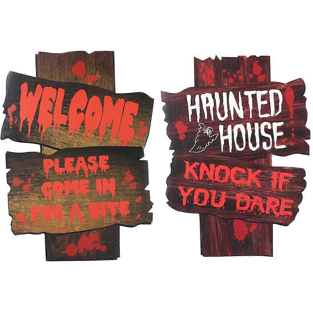 2Pcs Halloween Advertising Board Street Warning Sign Funny Halloween Props