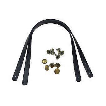 2 Pcs 60cm PU Leather Handbag Handles Tote Bag Replacement Strap Bag Belt with Rivets Accessories for Women Ladies DIY Pouch (Black)