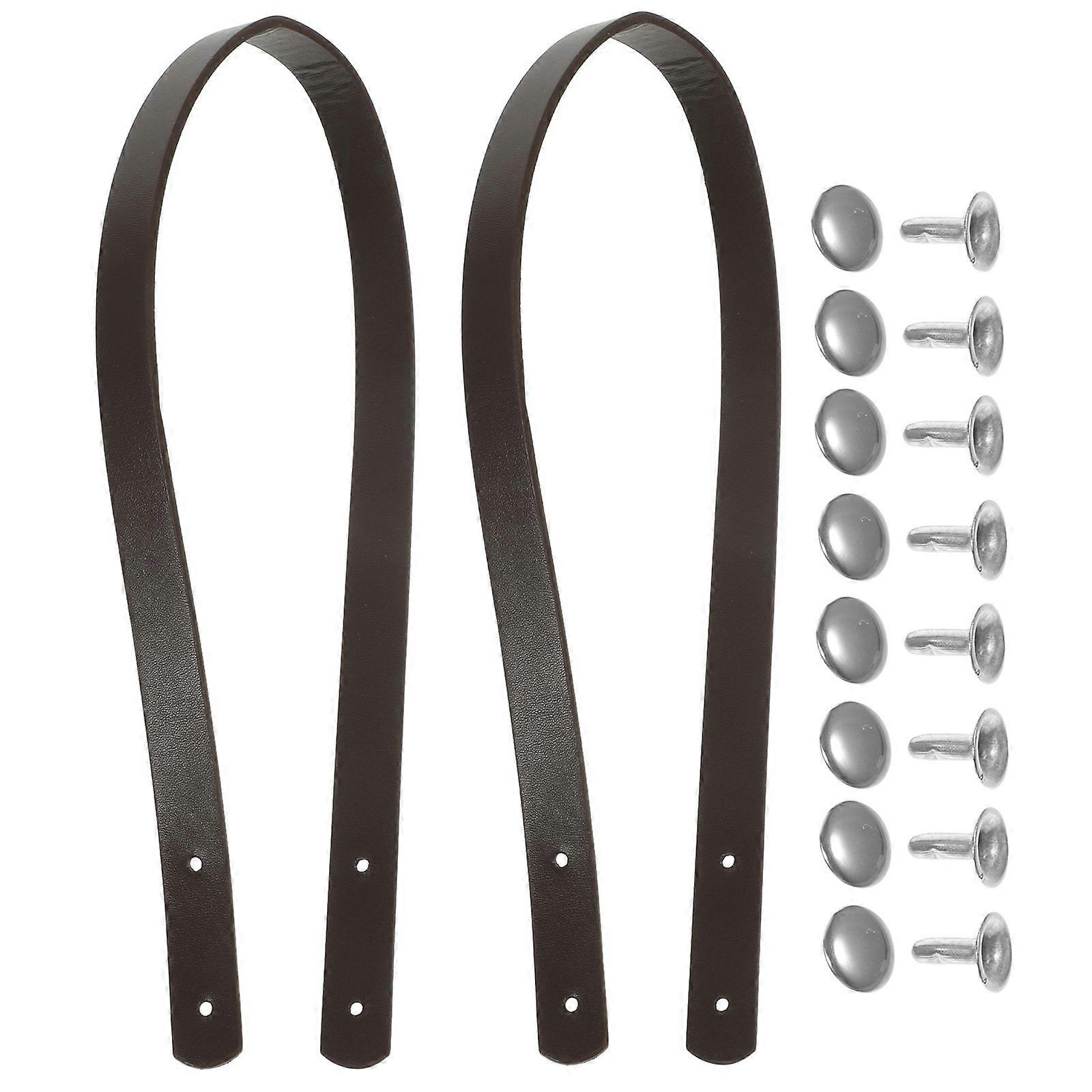 2 Pcs 60cm PU Leather Handbag Handles Tote Bag Replacement Strap Bag Belt with Rivets Accessories for Women Ladies DIY Pouch (Deep Coffee)