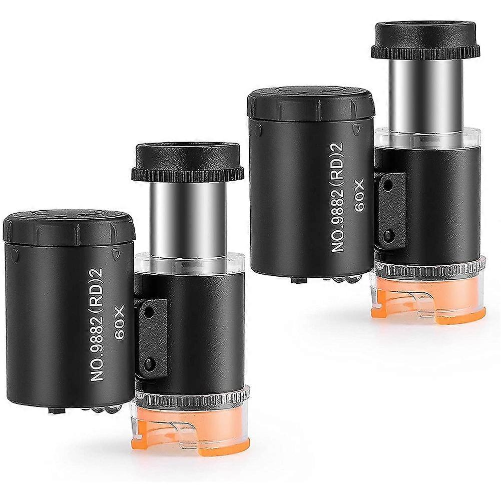 2 Pieces 60X Mini Pocket Microscope with 3 Light,Jewelers Eye Loupe Portable Magnifing Glass for Ha
