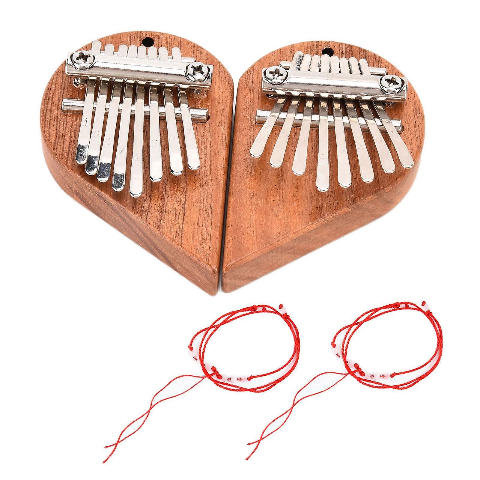 2Pcs 8 Key Thumb Piano Portable Wooden Kalimba Pendant Heart Shape Mini Finger Instrument(Heart Shape (Left Right) )