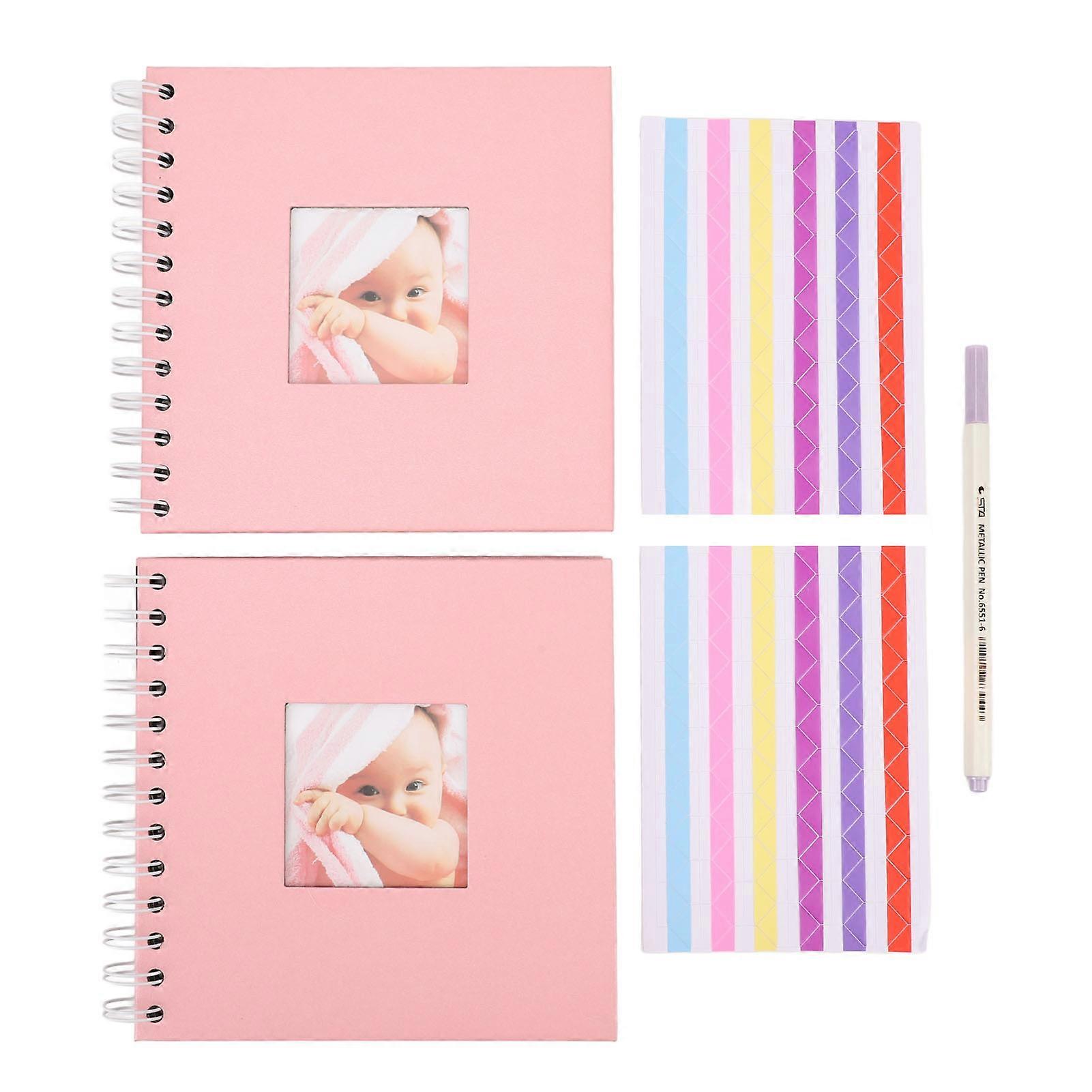 2pcs DIY Baby Album Set Accessory Hardcover Opening Cover Picture Display Memory Children Scrapbook Album Kit Pink