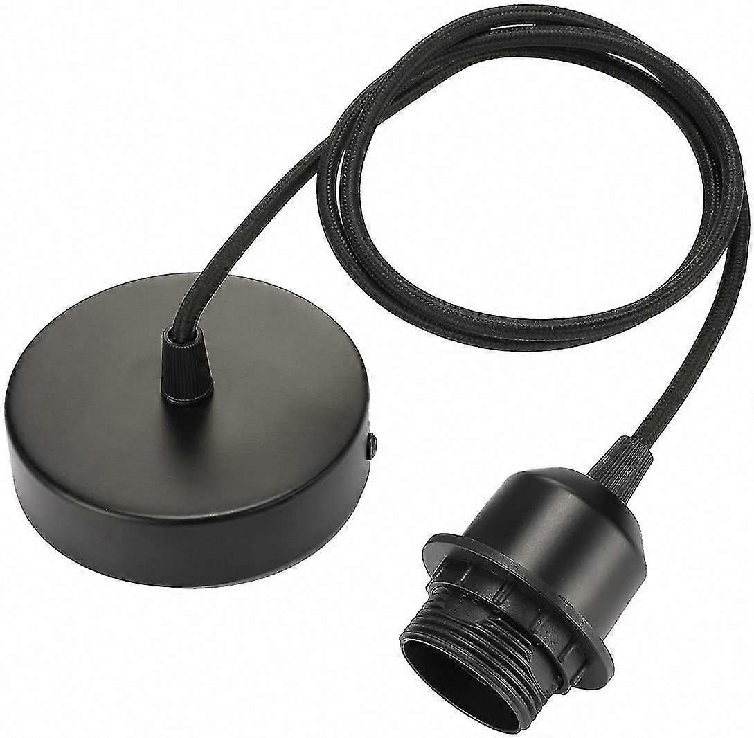 2 Pcs E27 Vintage Light Bulb Socket with 100cm Cable & Fixing Ring - Retro Ceiling Light Fixture for Living Room, Hallway, Bedroom - Black
