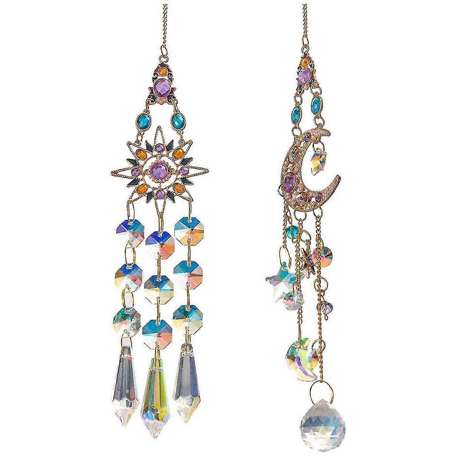 2 PCS Suncatcher Crystal Pendant Vintage Wind Chimes Garden Decor