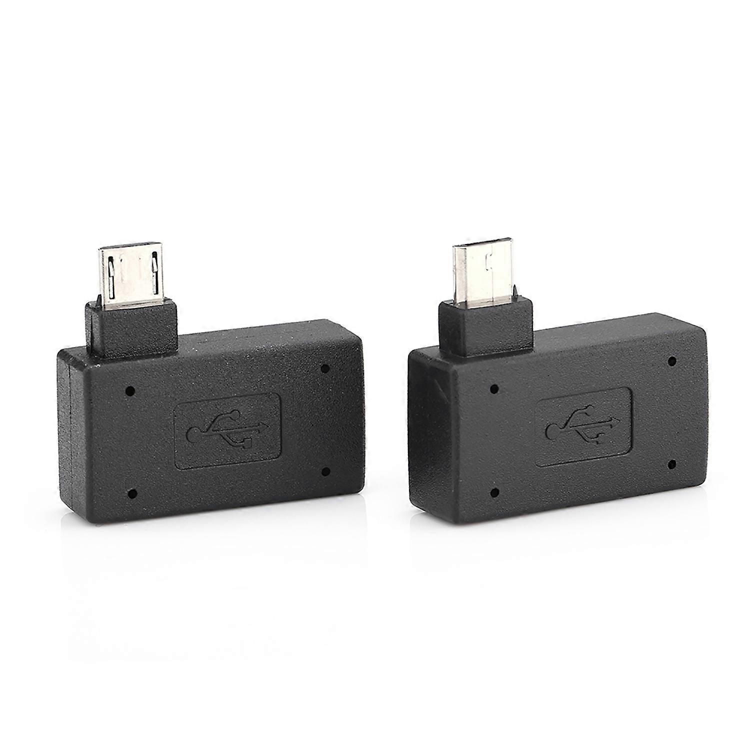 2Pcs USB 2.0 Female to Male Micro OTG Adapter Power Supply Port 90 Degree Left 90 Right Angled