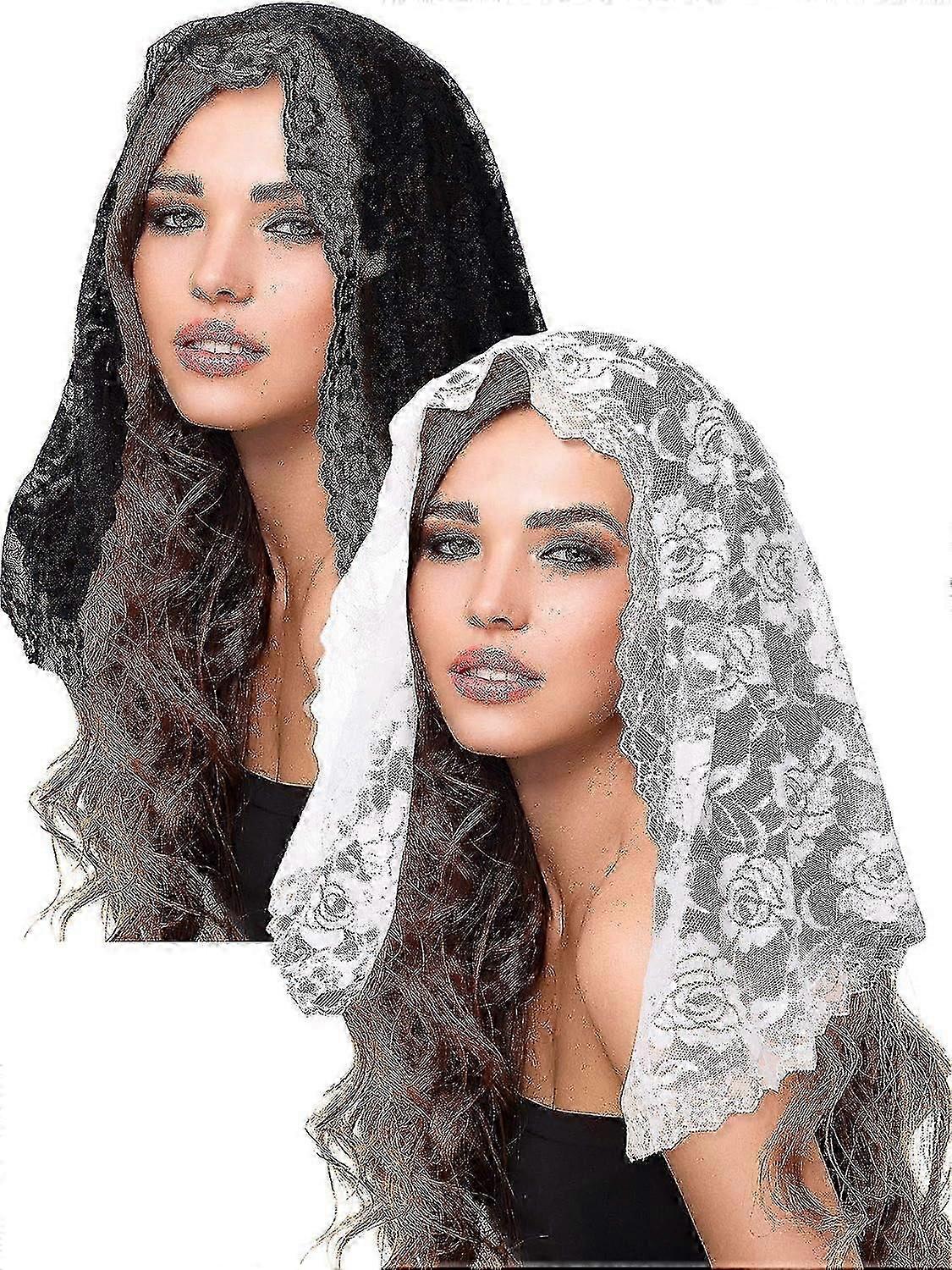 2 Pieces Floral Lace Veils Head Covering Latin Mass Mantilla Veils Short Scarf For Bridal Women