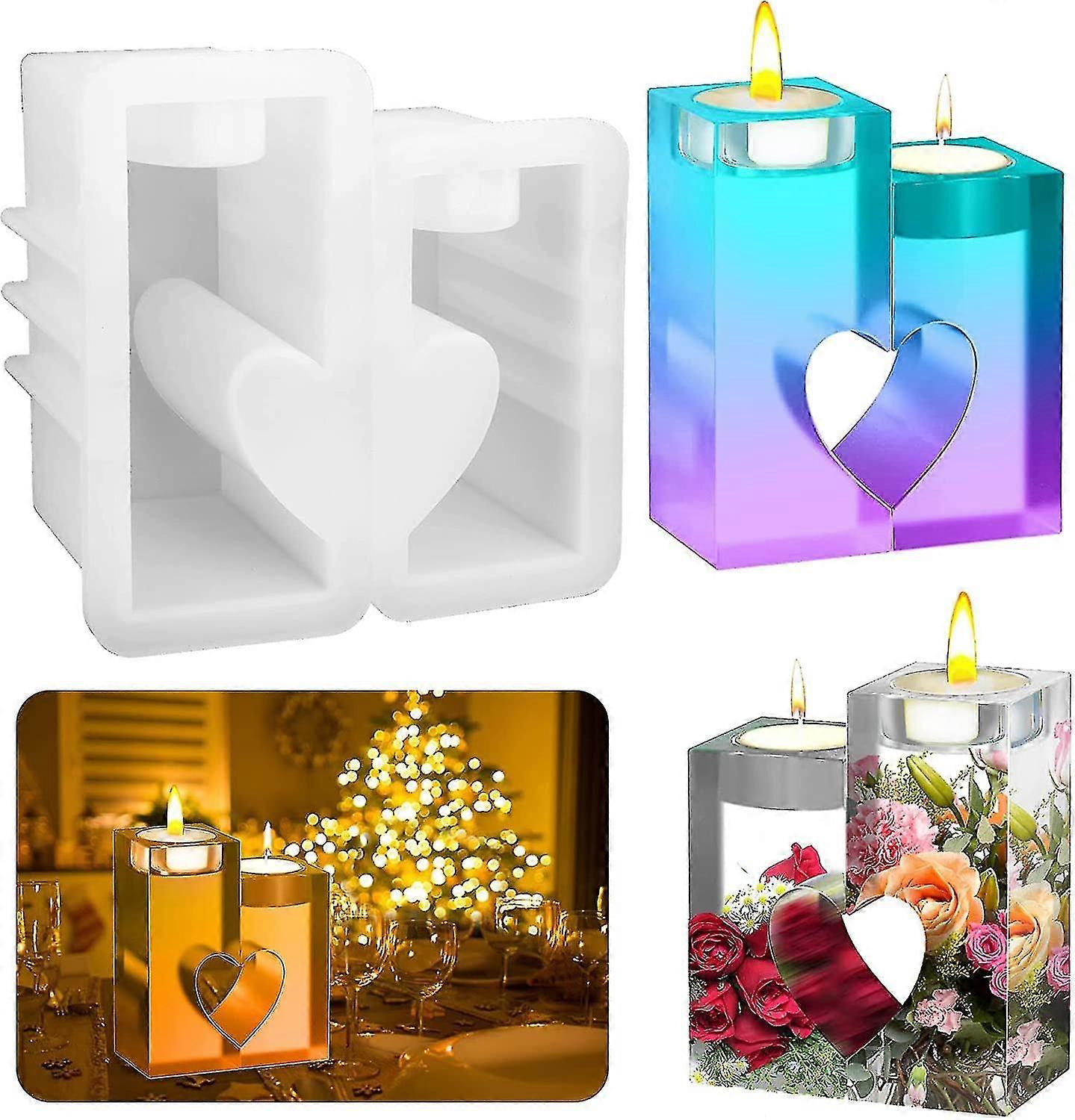 2pcs Candles Holder Resin Mold, Love Heart Candlestick Silicone Moulds Tea Light Holder Diy Epoxy Decoration Crafts Casting Molds