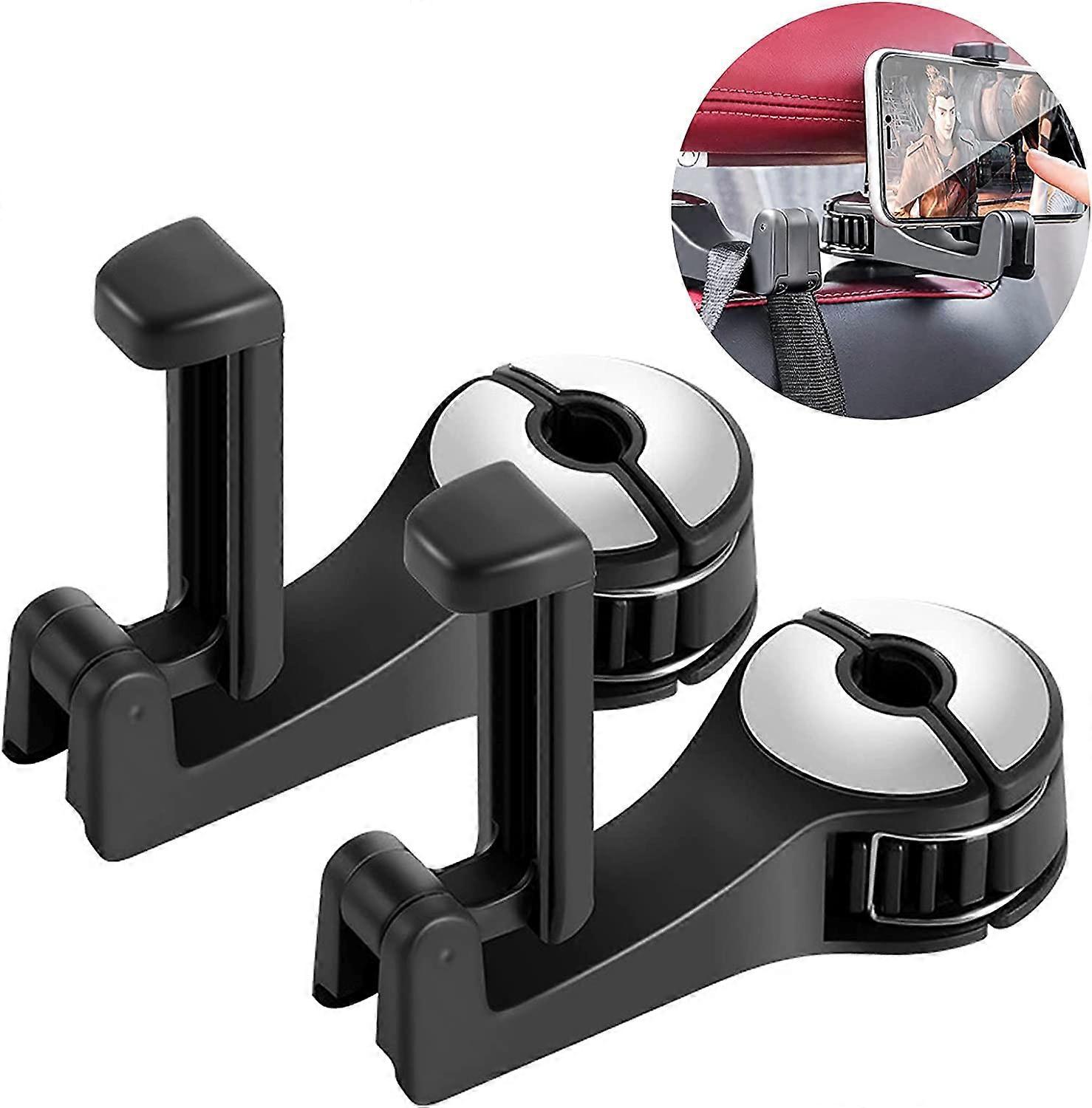 2pcs Universal Car Rear Headrest Hook, Car Seat Hook with Mobile Phone Holder, Handbags, Grocery Bags