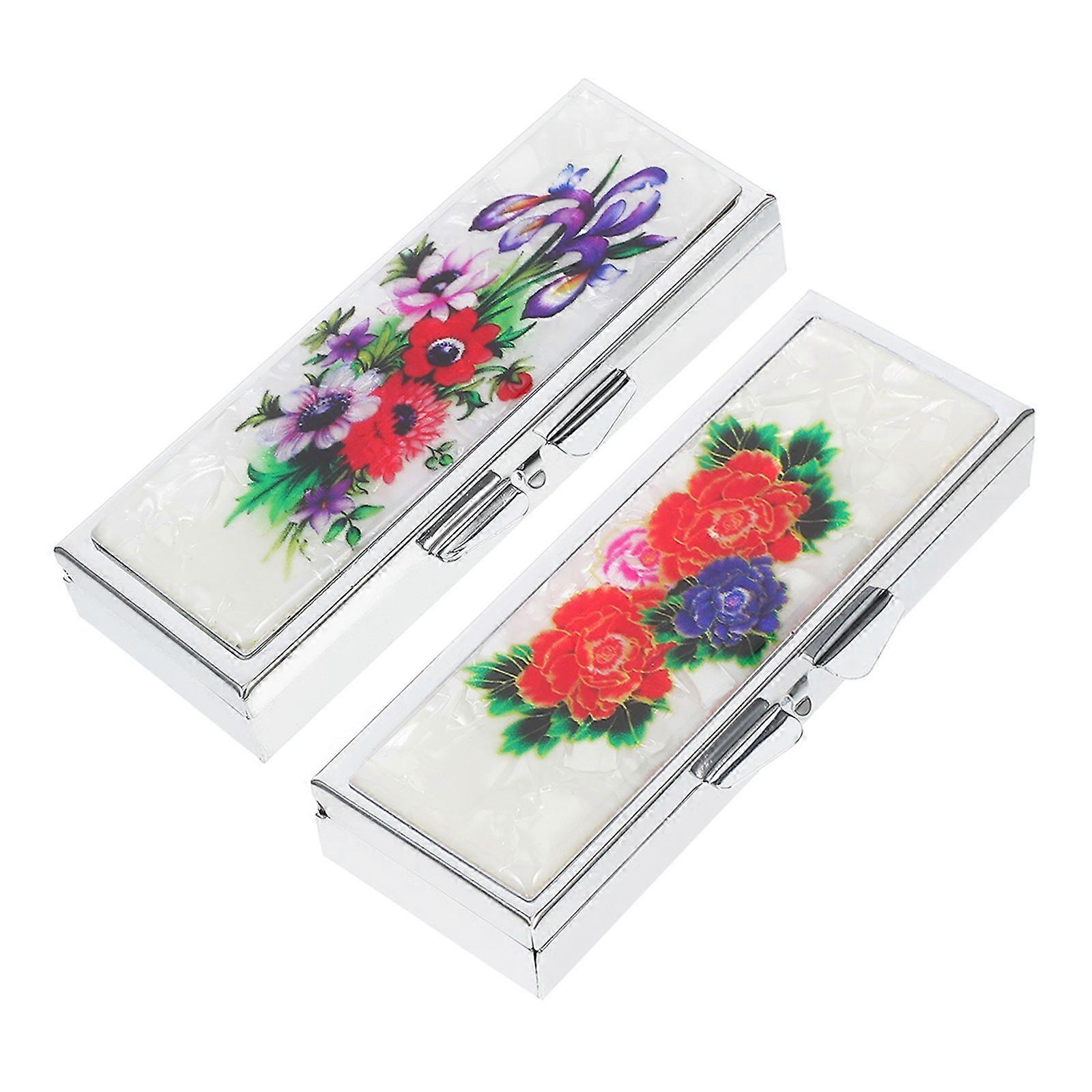 2pcs Stainless Steel Medicine Storage Case Portable Pill Holder (Random Pattern)