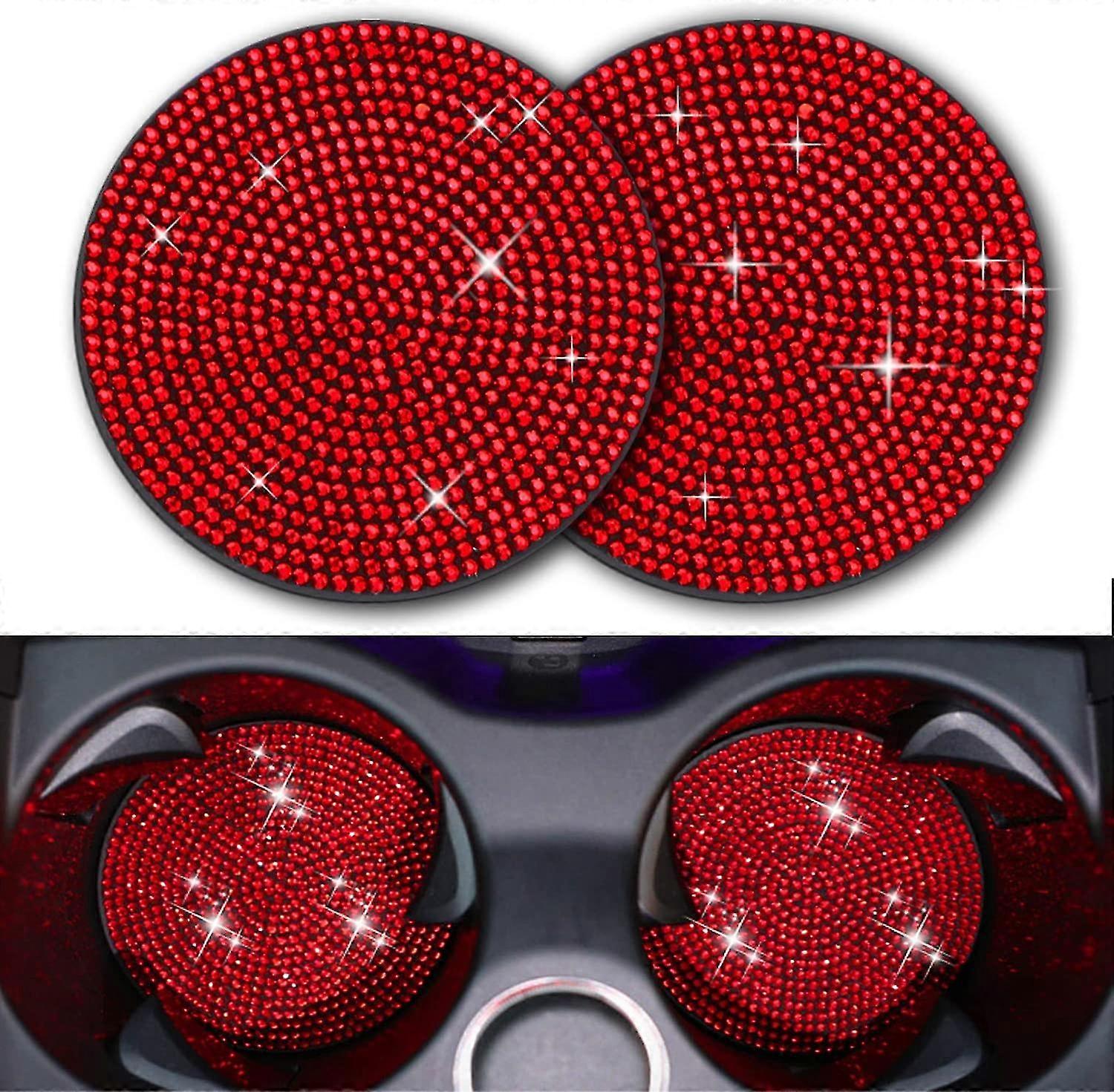 2pcs Bling Cup Holder Insert Coaster- 2.75 Inch Silicone Anti-slip Shockproof, Universal Fashion Car Interior Accessories For Women (red)