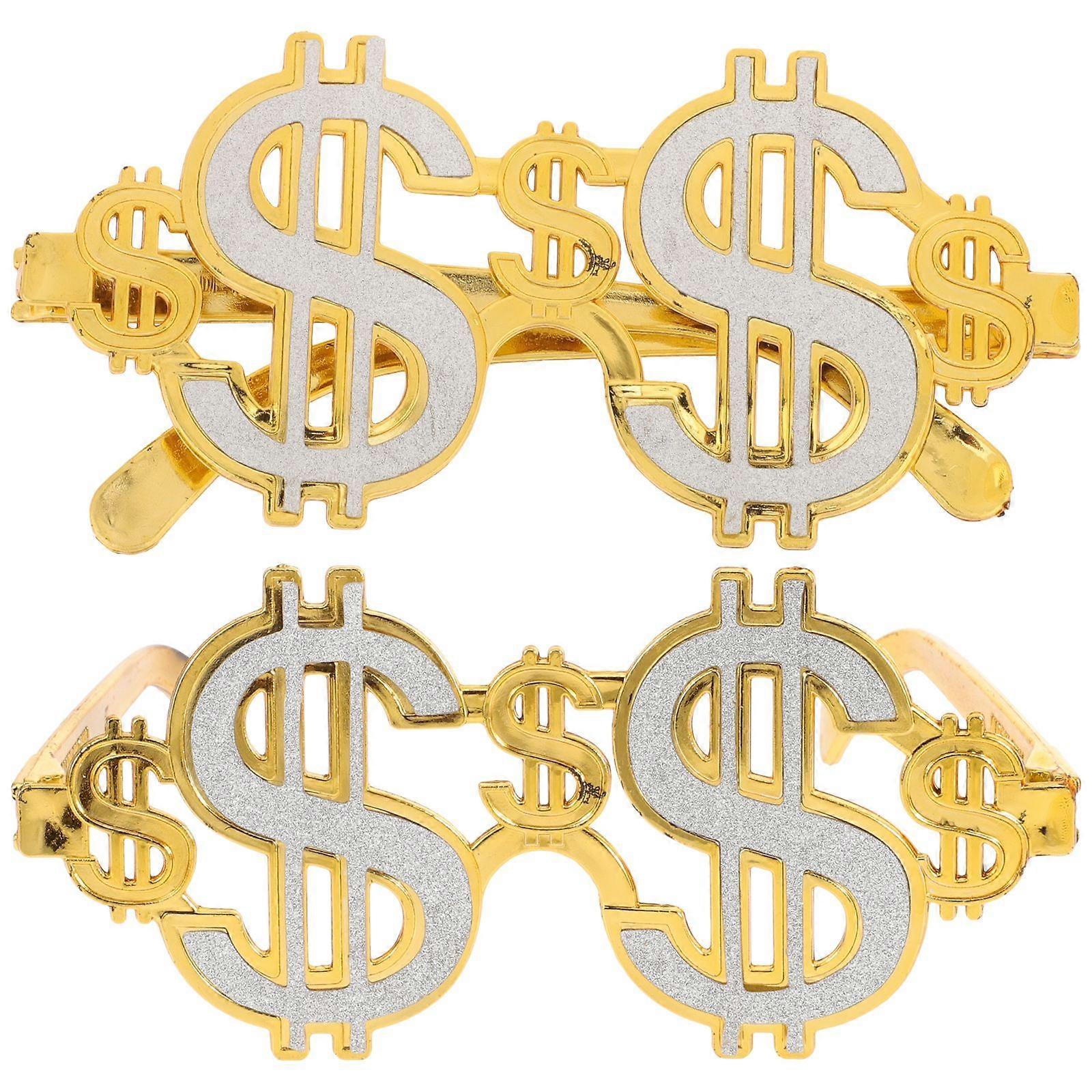 2pcs Party Eyeglasses Funny Dollar Glasses for Party Costume Photo Props (Golden)