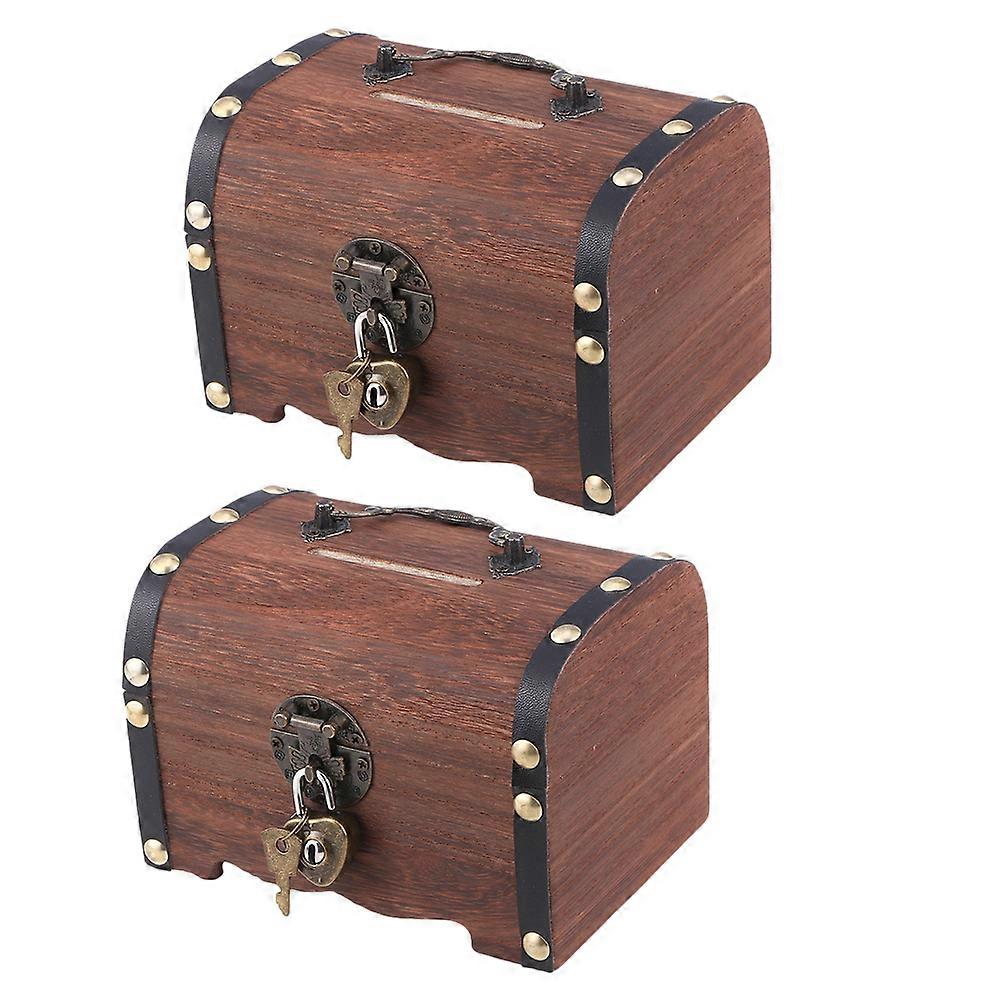 2Pcs Wooden Piggy Banks Saving Box Vintage Coin Storage Box Money Storage Case with Lock