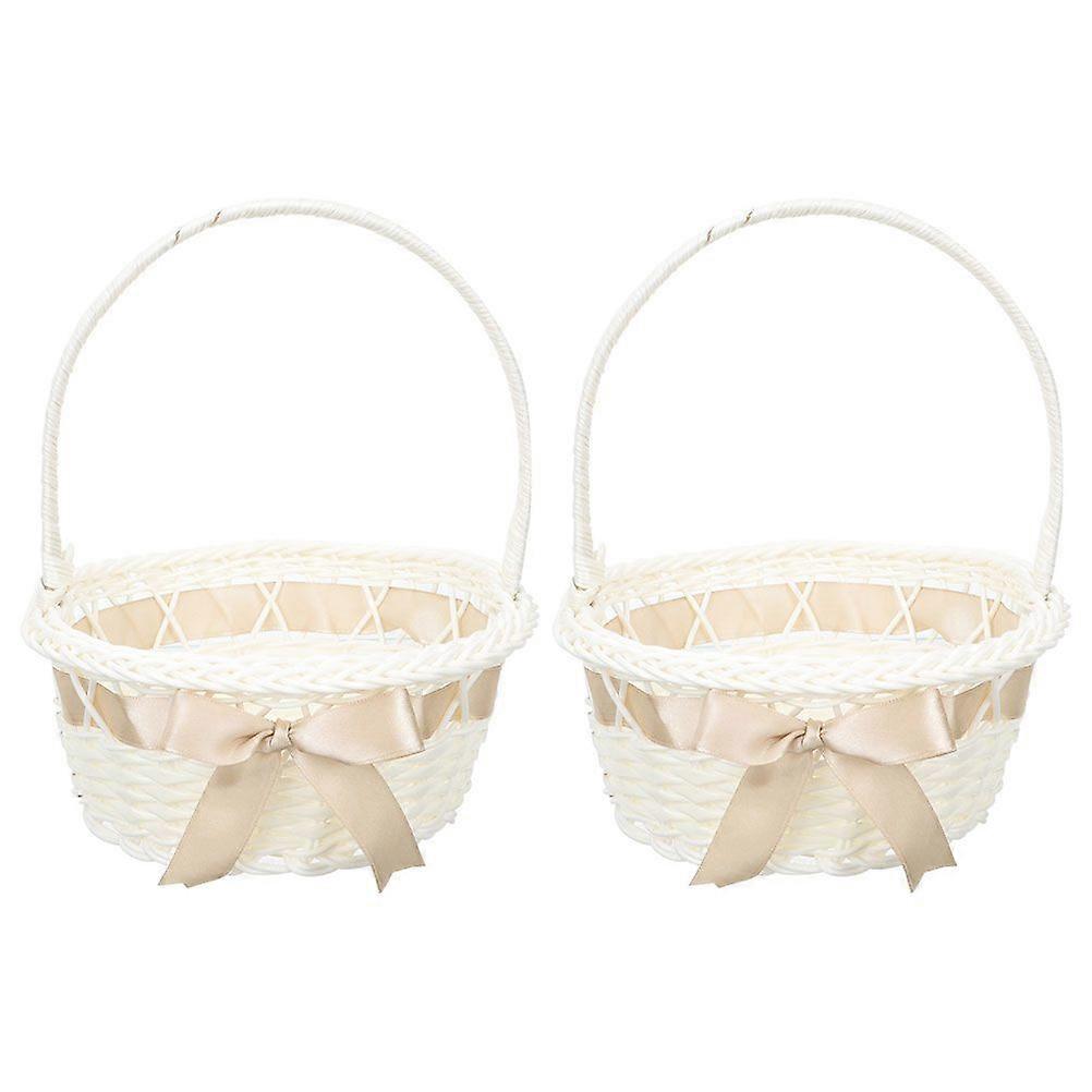 2pcs Wedding Flower Girl Basket Woven Basket Handmade Basket with Handle Flower Basket