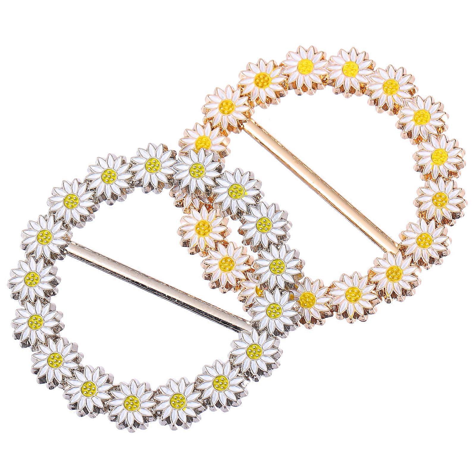 2pcs Daisy Flower Design Scarf Clips Zinc Alloy Material Assorted Color for Decoration