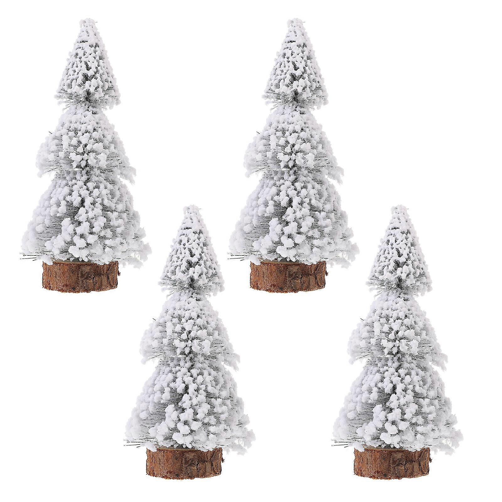2Pcs Desktop Miniature Christmas Trees Pine Tree with Snow Holiday Party Home Tabletop Decor