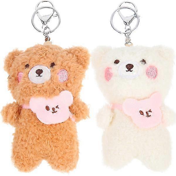 2pcs Cute Plush Bears Keychains Kawaii Fluffy Stuffed Animals Keyring Pendants