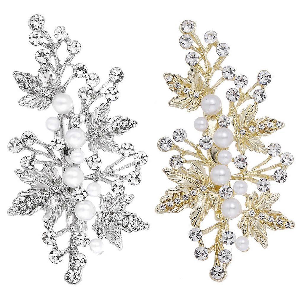 2pcs Pearl Hairpins Bridal Leaf Head Piece Bling Hair Clips Rhinestone Barrettes