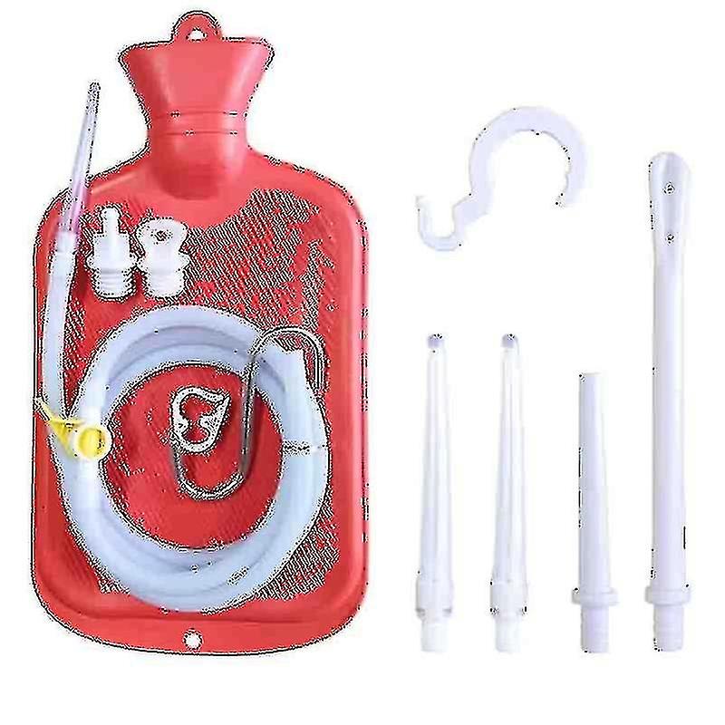 ENEMA BAG: 2 L enema bag kit with flow-control clamp,60 inch Long Silicone Hose, 1 flow-control clamp,1 switch3 tips 2 hooksRED REUSABLE: Entire Combination Kit is Reusable EASY TO USE--Enemas bag sets are convenient to use, just connect tube, fill the liquid, adjust flow-control clamp, enema douche for clean. MULTI-PURPOSE: Can serve as a hot/cold water bottle, douche or enema. Suitable for water or coffee cleansing, Gerson therapy, general cleansing, or feminine douche CONVENIENT: Perfect for Travel or At Home Use.You'an store products