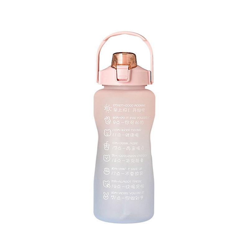 2L Large Capacity Straw Cup Gradient Color Plastic Water Cups With Time Marker Outdoor Sports Bottle