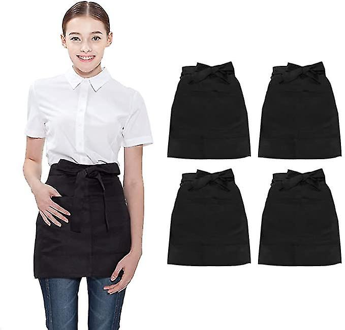 2 Pocket Waist Aprons For Waitress Restaurant, Bar, Bar, Cafe (pack Of 4, Black)