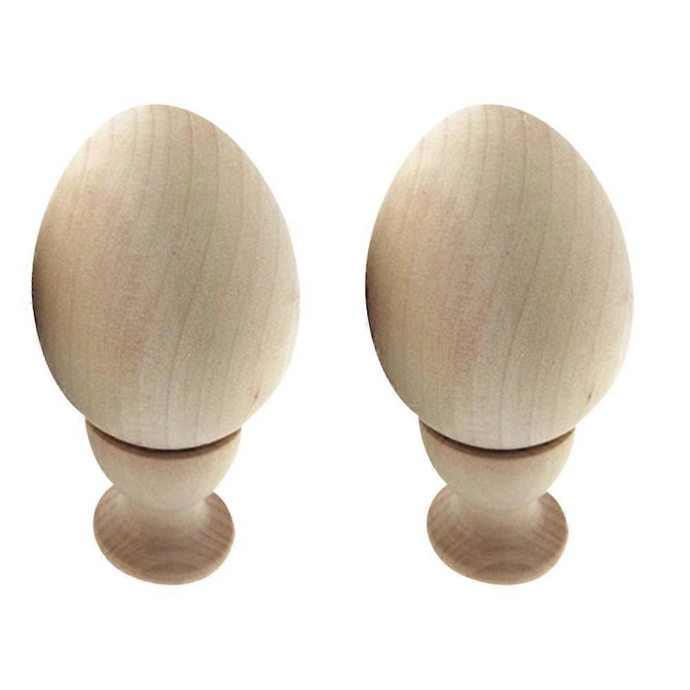 2 Sets Unfinished Wooden Eggs with Holders for DIY Easter Decorations, Crafts & Creative Play