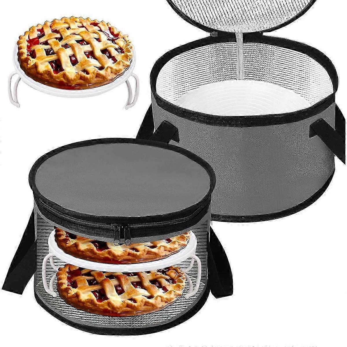 2 Sets Round Pie Carrier 11 x 7 Inch with Dish Tray Plate Stacker Insulated Casserole Carrier with