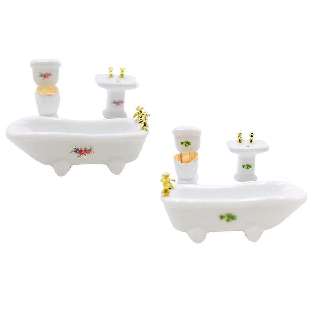 2 Sets Miniature Bathroom Set Ceramic Bathroom Furniture For 1/24 Dollhouse