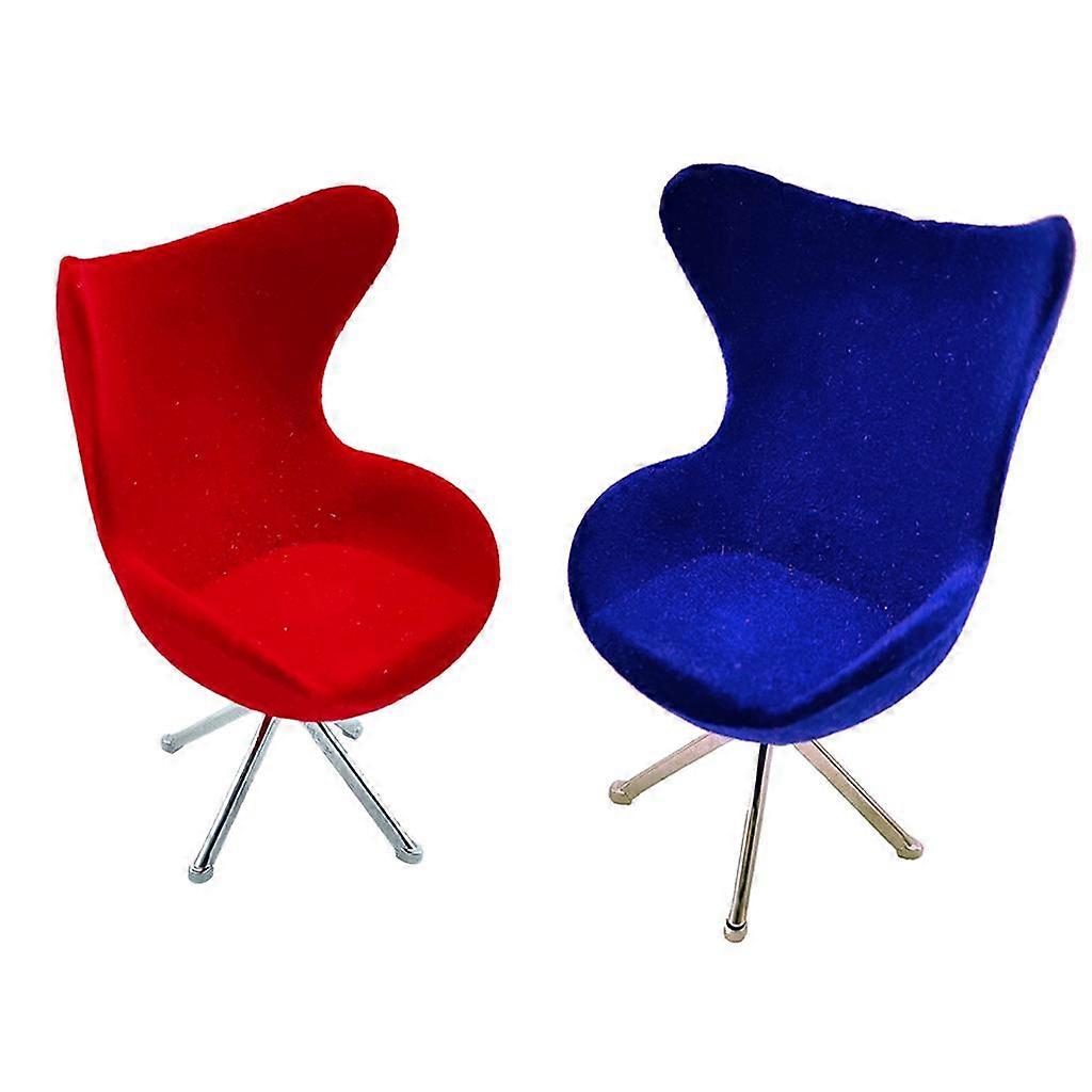 2pcs 1:12 Scale Dolls House Plastic Swan Chairs Furniture Set Decor Red Blue