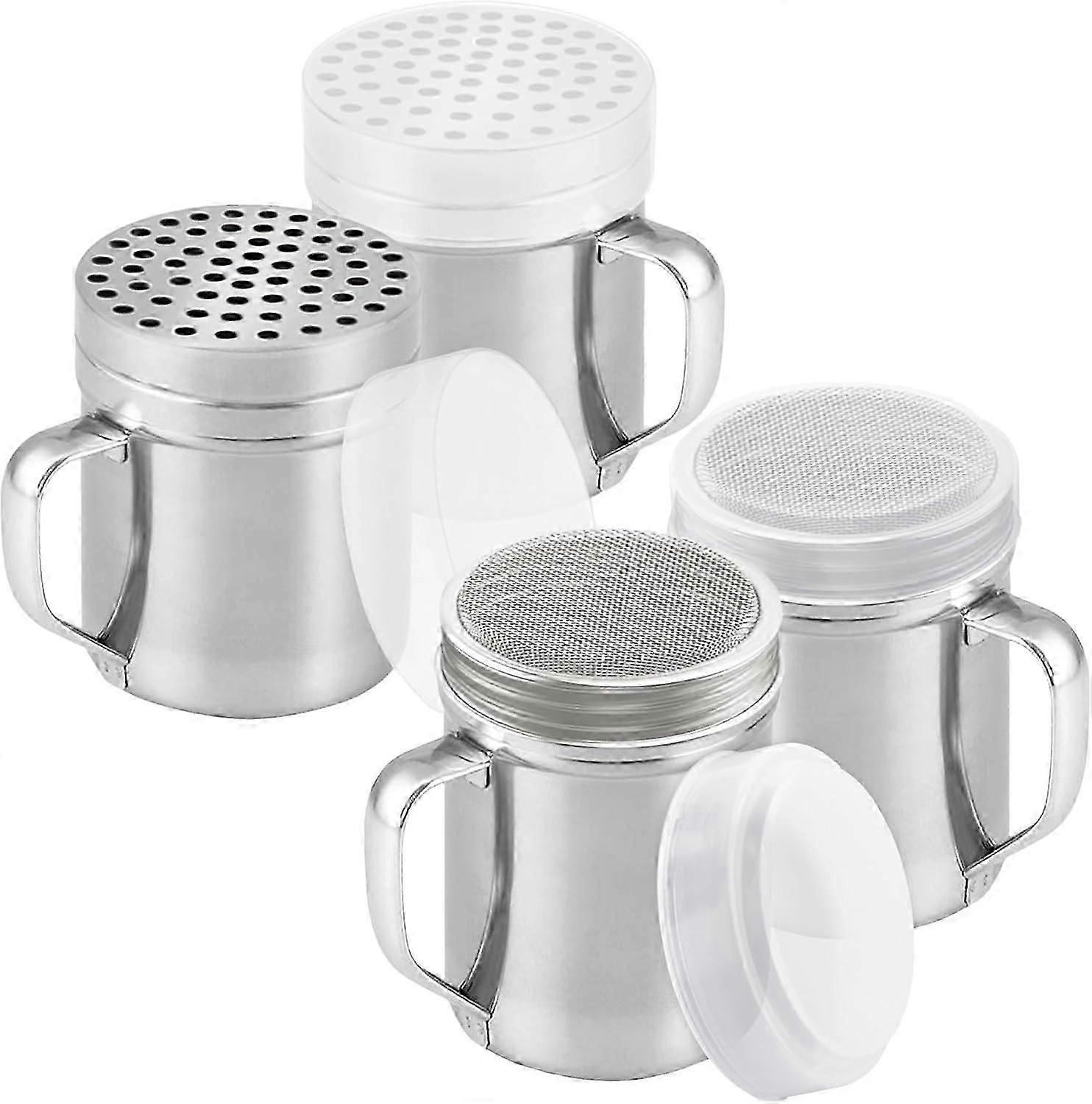 [2-pack] 6oz Powdered Shaker with Fine Mesh, [2-pack] 10oz Metal Parmesan Cheese