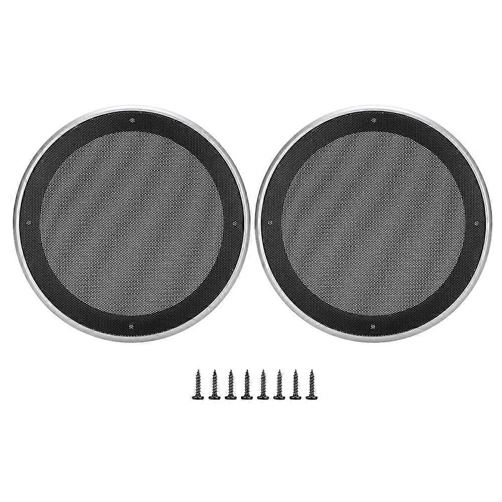 2 pcs 8 inch Audio Speaker Cover Decorative Circle Protective Metal Mesh Cover(silver+black)
