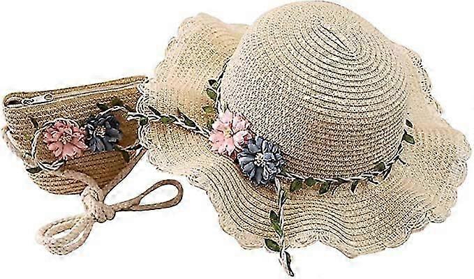 2-8 Years Old Girls Straw Hat Tourist Hat Sun Hat + Small Bag Set