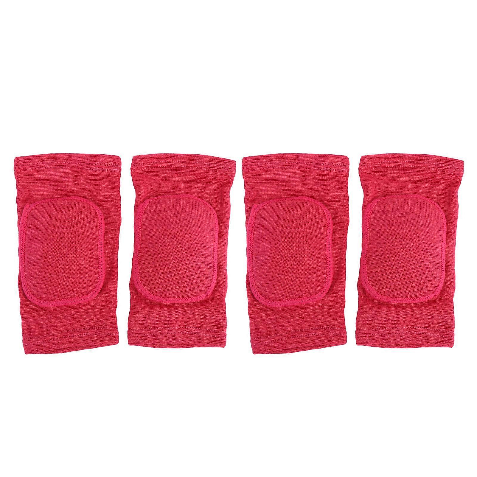 2 Pairs Sleeves High Elastic Breathable Knee Protector Pads for Ice Hockey Skating Running Rose Red