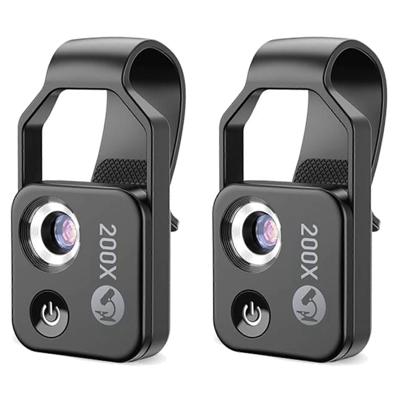 2 Pcs 200X Cell Phone Microscope Accessory with Window Microscope, Portable Mini Digital Microscope with LED Light/Universal Clip