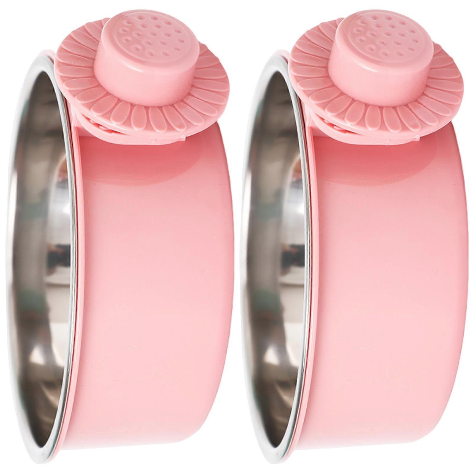 2 Rustless Suspended Pet Bowls 650ml Additional Large Size Slip Resistant Base For Kennel Double Bowl Feeding Station Set Pink