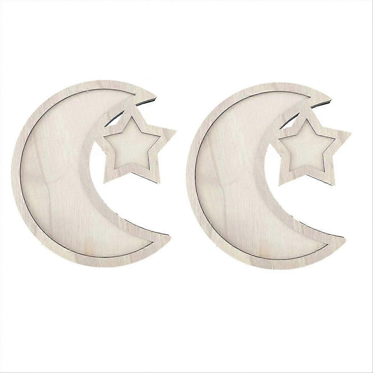 2 Sets Ramadan Wood Tray Eid Mubarak Serving Tableware,A