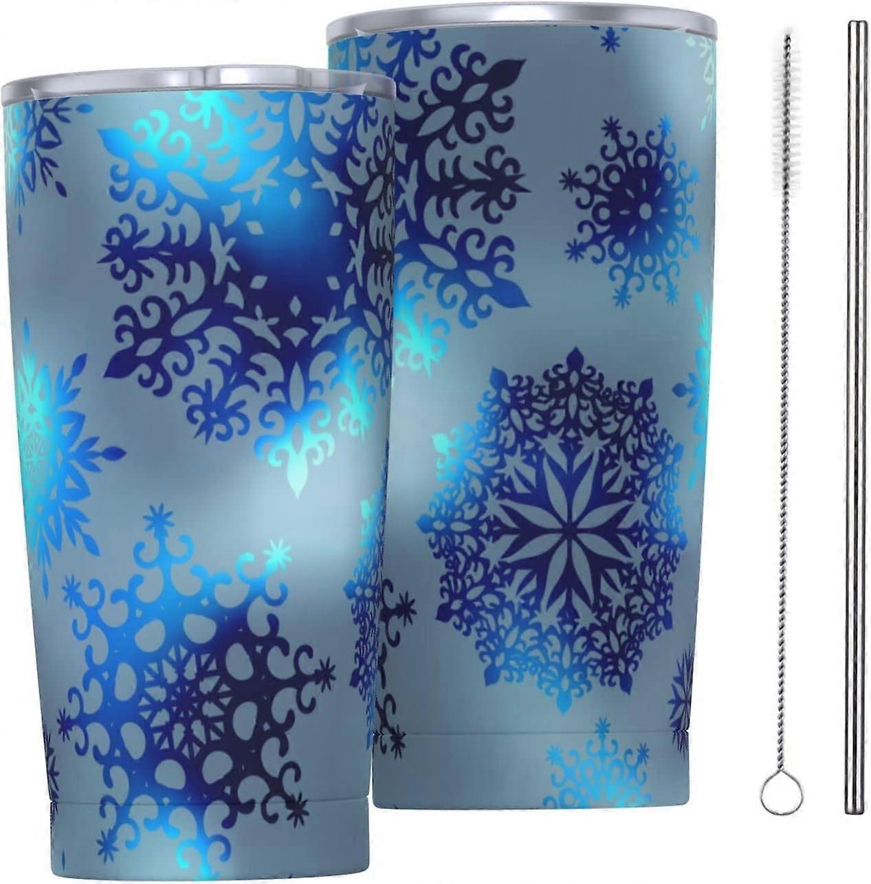 20 Oz Insulated Tumbler with Lid and Straw, Snowflakes Blue Gray Mom Dad Iced Coffee Stainless Steel Vacuum Insulated Tumbler Cup Travel Mug for Hot a