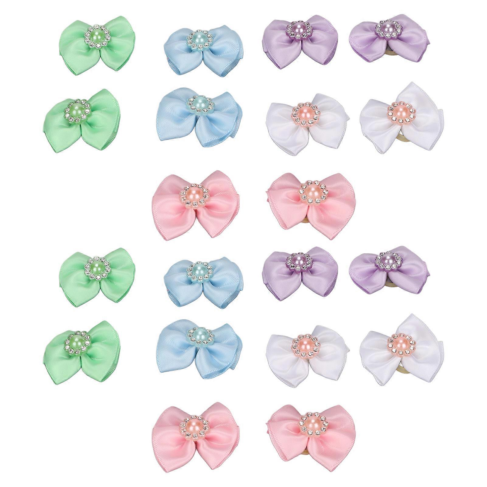 20pcs Pet Bow Band Cute Small Mixed Colors Hair Accessory Dog Grooming Topknots for Puppy Cats Rabbits