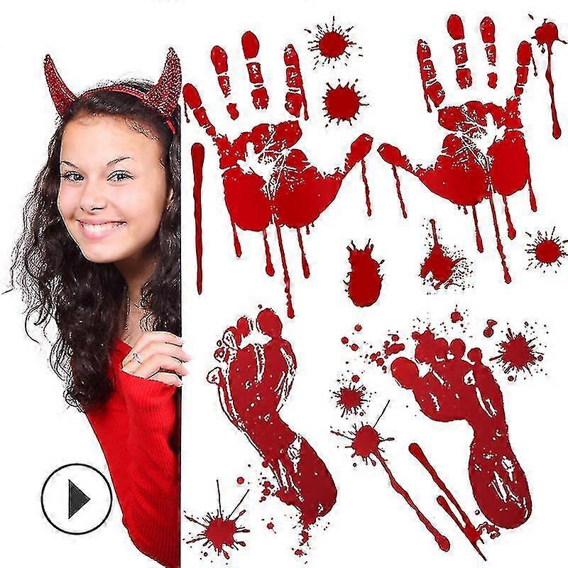 20pcs Halloween Decorations, 10 Sheets Terror Bloody Handprint 10 Footprint Window Stickers, Halloween Party Indoor/outdoor Decoration,spooky Uu